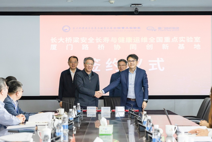 2026年1月8日,長(zhǎng)大橋梁安全長(zhǎng)壽與健康運(yùn)維全國(guó)重點(diǎn)實(shí)驗(yàn)室(以下簡(jiǎn)稱長(zhǎng)大橋國(guó)重)廈門路橋協(xié)同創(chuàng)新基地簽約暨揭牌儀式在廈門路橋建設(shè)集團(tuán)有限公司(以下簡(jiǎn)稱路橋集團(tuán))舉行。中國(guó)工程院院士、長(zhǎng)大橋國(guó)重主任張喜剛,路橋集團(tuán)黨委書(shū)記、董事長(zhǎng)吳燦東,路橋集團(tuán)黨委委員、副董事長(zhǎng)李少波,長(zhǎng)大橋國(guó)重副主任楊揚(yáng),以及相關(guān)權(quán)屬企業(yè)與合作單位代表出席活動(dòng)。